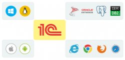 - тонкий клиент на Windows и Linux (способен работать либо через локальную сеть, либо через веб-серверы). Веб-клиент работает через Microsoft IIS или Apache (на серверной стороне) и через браузеры Firefox, Internet Explorer, Safari, Chrome на стороне клиента. Толстый клиент не является приоритетным направлением компании «1С», его развитие не планируется, однако с рядом ограничений можно использовать Windows и Linux. Мобильный офлайн-клиент – iOS и Android.