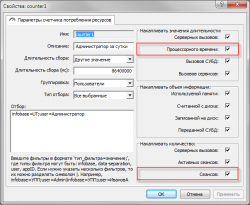 В счетчике потребления ресурсов вы можете установить показатели, по которым будет накапливаться статистика. Теперь вы можете использовать два новых показателя, которые были недоступны ранее: процессорное время и количество сеансов.